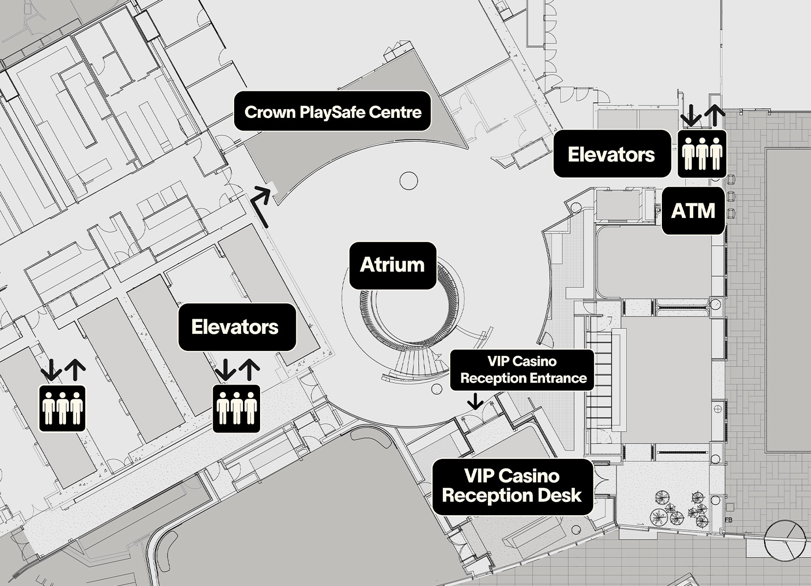 - Visit the Crown PlaySafe Centre located on level two (2) of the tower, opposite the gaming floor entrance; a map of the location is available below.