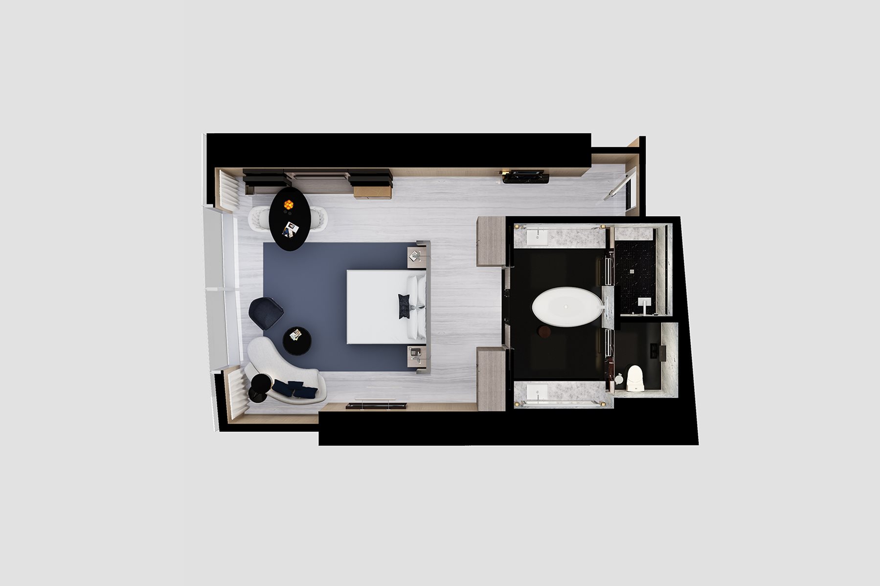 - In-room tablets with connectivity to blinds, lights and in-room dining
