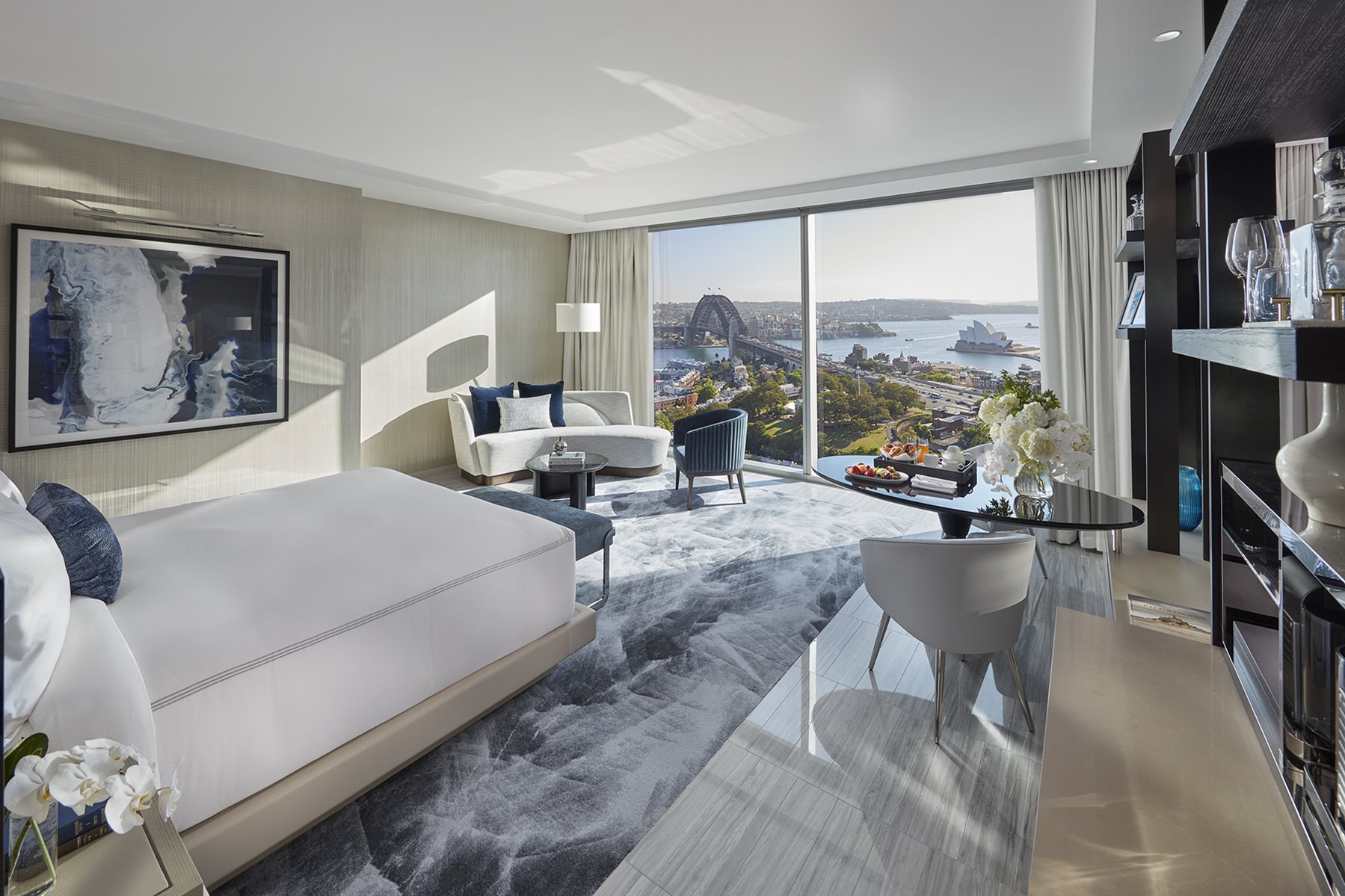 Take in the endless horizon from the tiered pools, and from the spaciously appointed Opera Studio. Marvel at the Sydney Opera House and Harbour Bridge from the sun-drenched sofa, or recline in luxury in the egg-shaped bath situated in the middle of your ensuite.