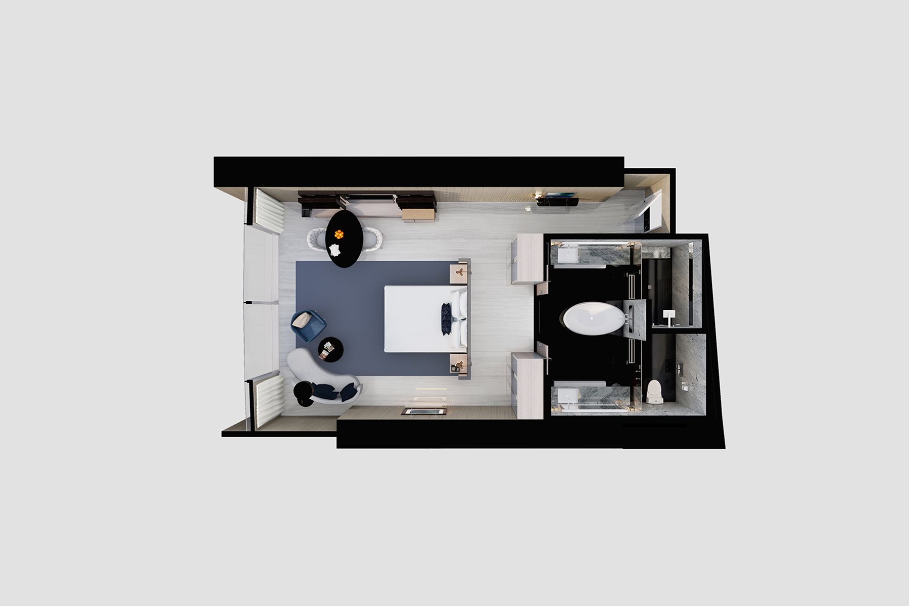 - In-room tablets with connectivity to blinds, lights and in-room dining